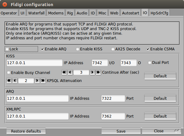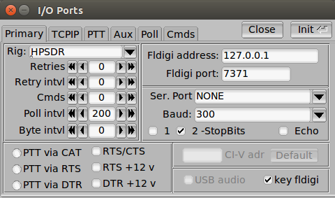 Note that the only field that need be set for flradio is the dsp#, while you need to set both the fldigi (XMLRPC) port and the TCPIP port in the flrig configurations.